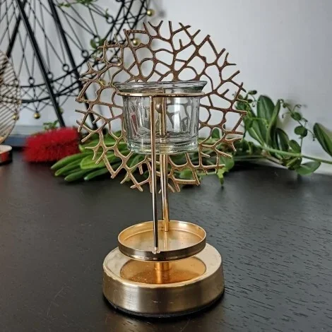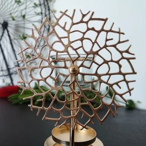Het moderne en strakke ontwerp, geïnspireerd op koraal en de levensboom, laat de gloed van de kaars ontsnappen om een warme sfeer te creëren.